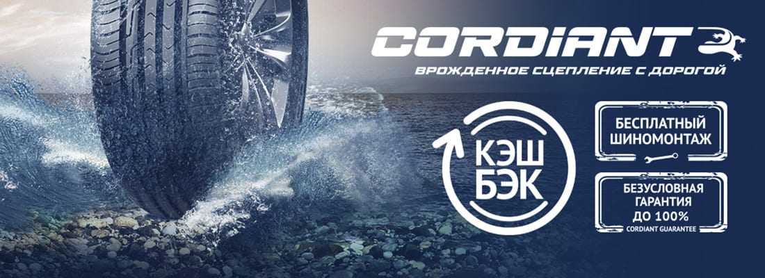 - КЕШБЭК начисляется, при покупке комплекта (от 4-х) летних шин «CORDIANT» с 16 по 18 дюймы.